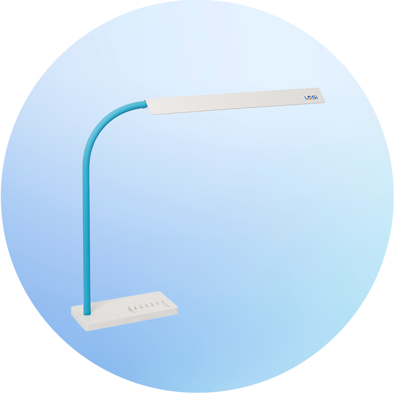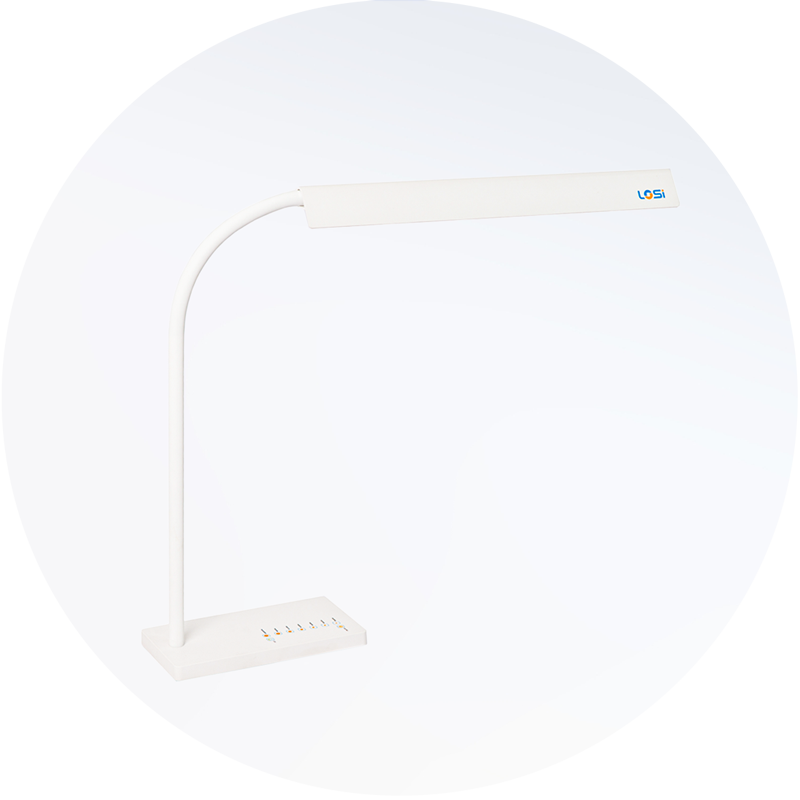 - Thiết kế độc đáo của đèn bàn SUNNY ngăn tiếp xúc trực tiếp với nguồn sáng, ánh sáng được trải đều trên bề mặt phản xạ mà cụ thể là bàn làm việc